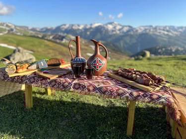 All Meals Included: Breakfasts, lunches (picnics, home-cooked, and restaurant Khinkali), and dinners/Supras.