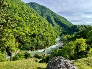 Escape the tourist trail to Doberazeni, a hidden mountain paradise tucked in the Tekhuri River valley. Swim in crystal-clear pools, hike wild trails, and experience the warmth of authentic village life—just a scenic drive from Kutaisi.