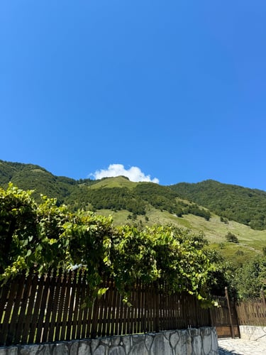 Here the air is pure, the nights are lit by a sky full of stars, and life moves at the gentle pace of the mountains. Doberazeni is far from the tourist trail – no large hotels, no noisy bars, just a handful of family homes, grazing cows, and endless green meadows. This is authentic Georgian mountain life: waking to roosters, drinking crystal-clear spring water, and sharing meals made from ingredients grown right outside the door.